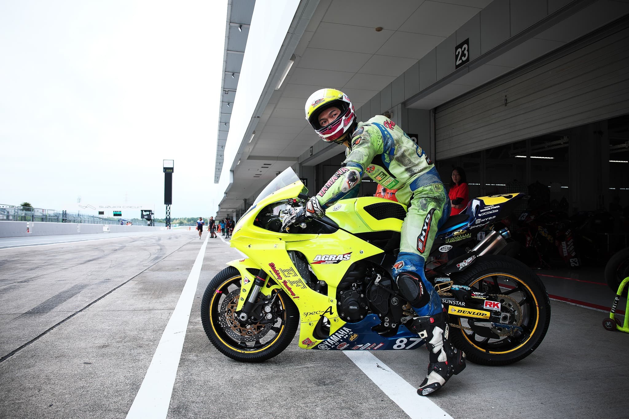 午後からは雨も止み、難しいコンディションとなったST1000クラスの公式予選。レインタイヤで予選に挑んだ花村と永山は、花村が8番手、永山が9番手の結果に。