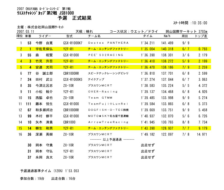 | 2007/03/11 ウエストチャレンジカップ Round.1 | |
