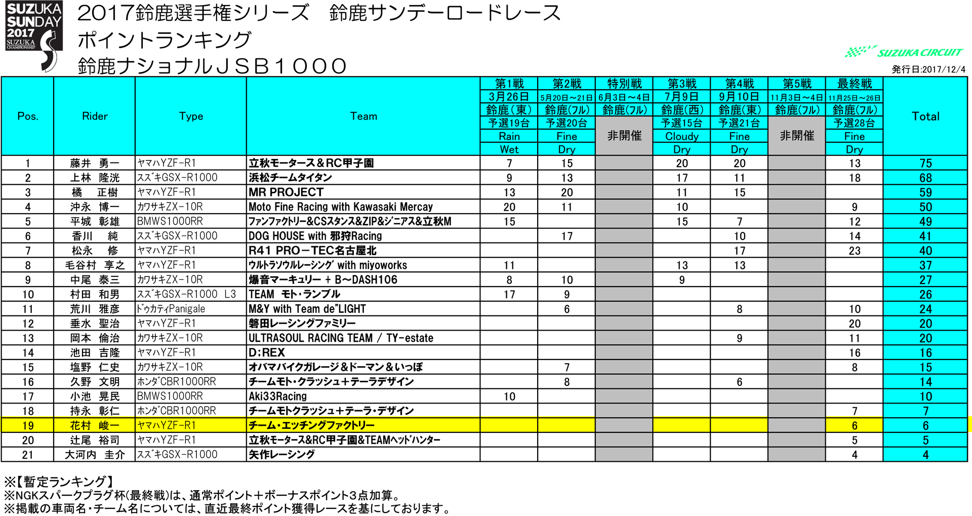| 2017/11/25~26 鈴鹿・近畿選手権シリーズ Round.5 | |